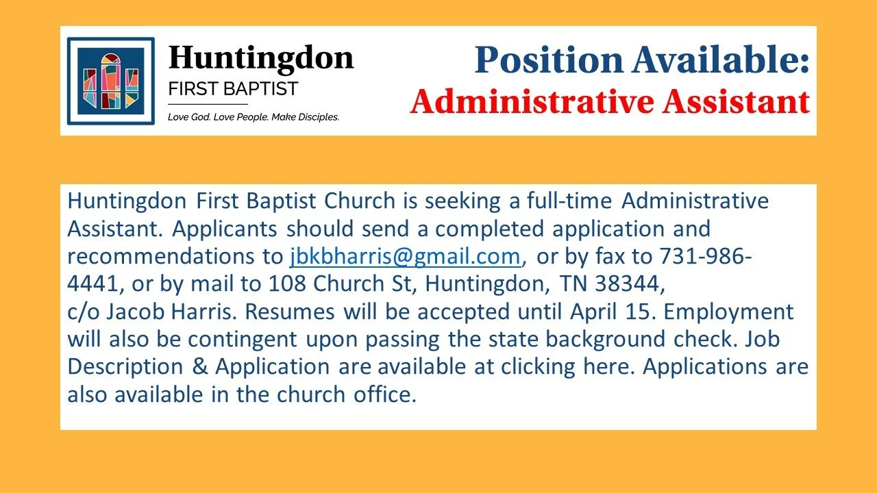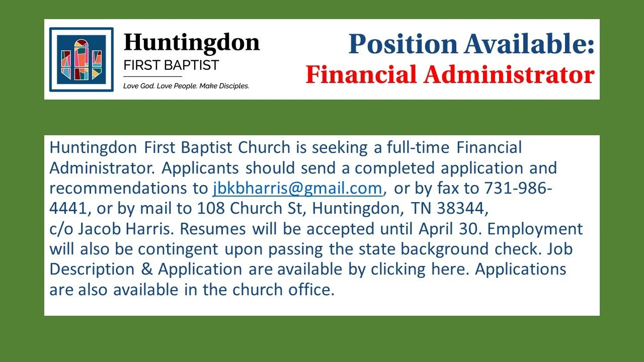 We desire for each person to come to know Jesus Christ in a personal way. Everything we do at First Baptist Church in Huntingdon is done with this aim in mind. From children's events like Vacation Bible School, to frequent outings for Senior adults with the Best Timers, we hope that you will experience the love of Jesus in a real way through the mission of FBC.